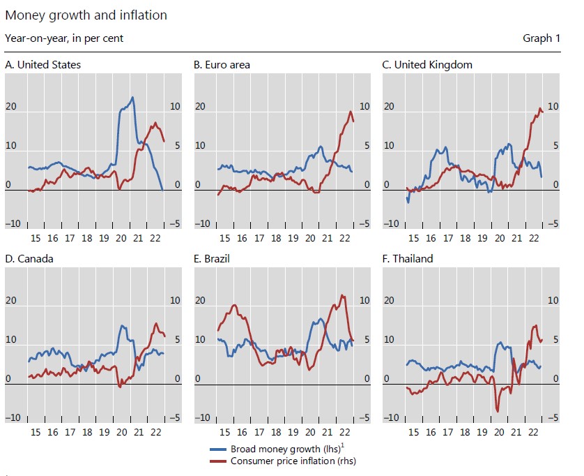 The recent BIS bulletin (Borio, Hofmann and Zakrajšek (2023)) provided some systematic evidence across different countries on the relationship between money supply and inflation. It somehow supports what the three economists’ view on money supply explaining inflation. Here are their findings from their short paper: